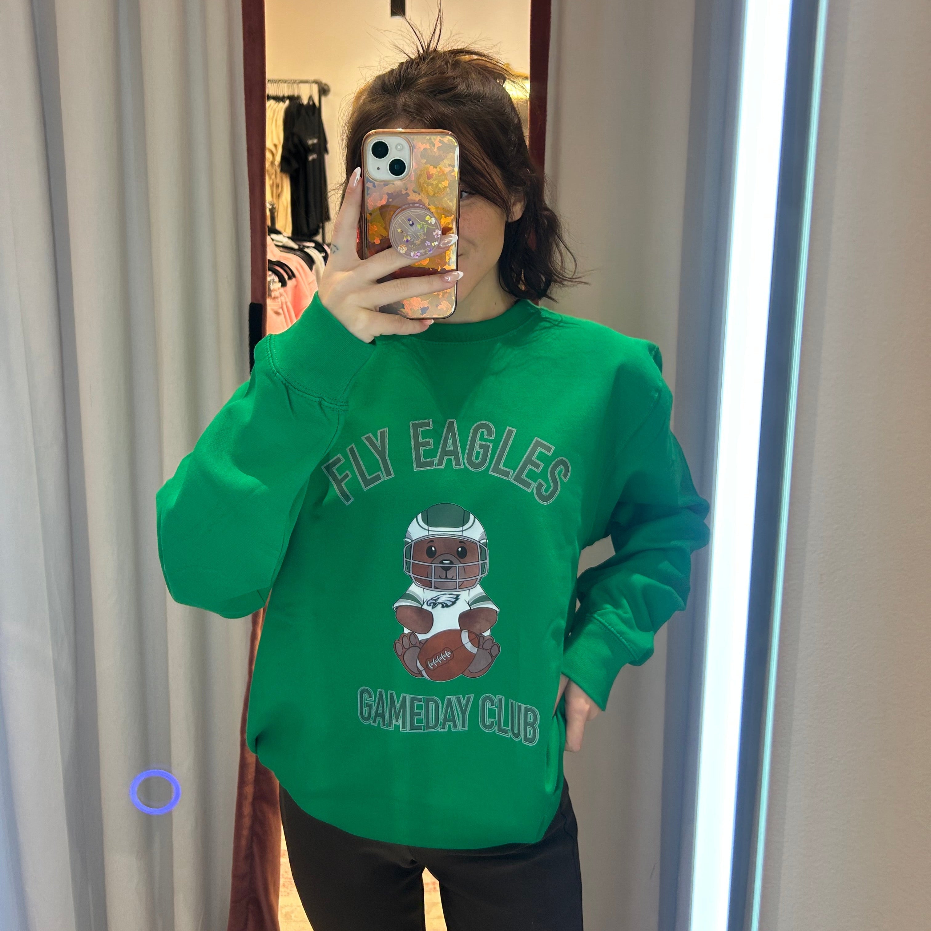 Cheer on the Eagles in style with this adorable game day crewneck! Perfect for showing your team spirit, this cozy pullover features a bold "Fly Eagles" design that'll have you ready for kickoff. Whether you're heading to the stadium or watching from home, this cute crew neck keeps you comfortable and game-day ready. Soft, durable, and designed for devoted fans who wear their pride with pride.
